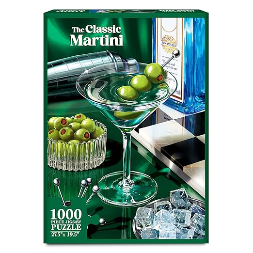 1000-PIECE PUZZLE: Shake up some fun with The Classic Martini puzzle! This premium set includes 1000 white-backed pieces, sorting trays, and a full-size reference poster. Once completed, the masterpiece measures an impressive 27.5″ x 19.5″‘.