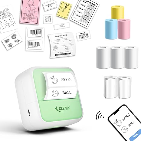 203𝐃𝐏𝐈 𝐂𝐋𝐄𝐀𝐑 𝐏𝐑𝐈𝐍𝐓𝐈𝐍𝐆: Seznik Mini Sticker Printer has a cute look and a small size. More importantly, compared with similar mini printer, it has clear printing and high-definition imaging.